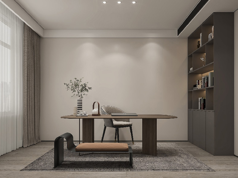最后就是书房风格的定位,通来说中式风格常更符合书香之地,但是传统中式又会让空间显得压抑,所以可以采用新中式的风格设计,彰显出新中式的禅意,如果不中意中式风格也可以选择与客厅空间相同的风格设计,整体效果也更加和谐自然。