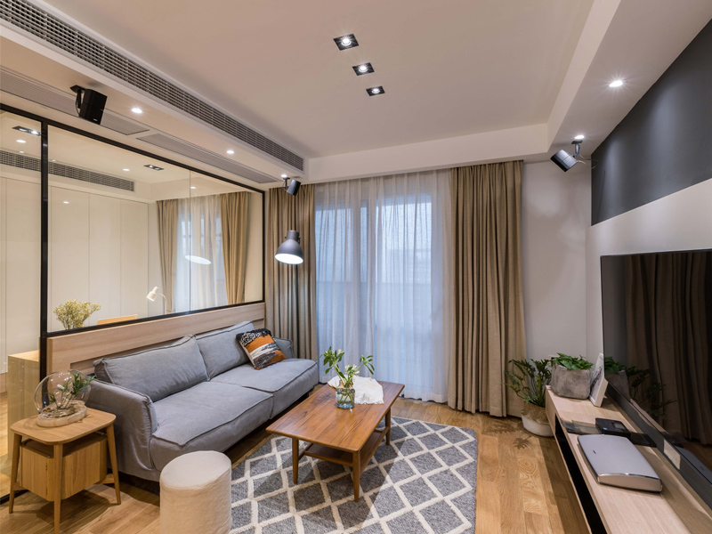 本案风格定位于简约原木风,使用了简约并且较少的家具及装饰点缀,木质融入让空间视觉上更加富有自然感。