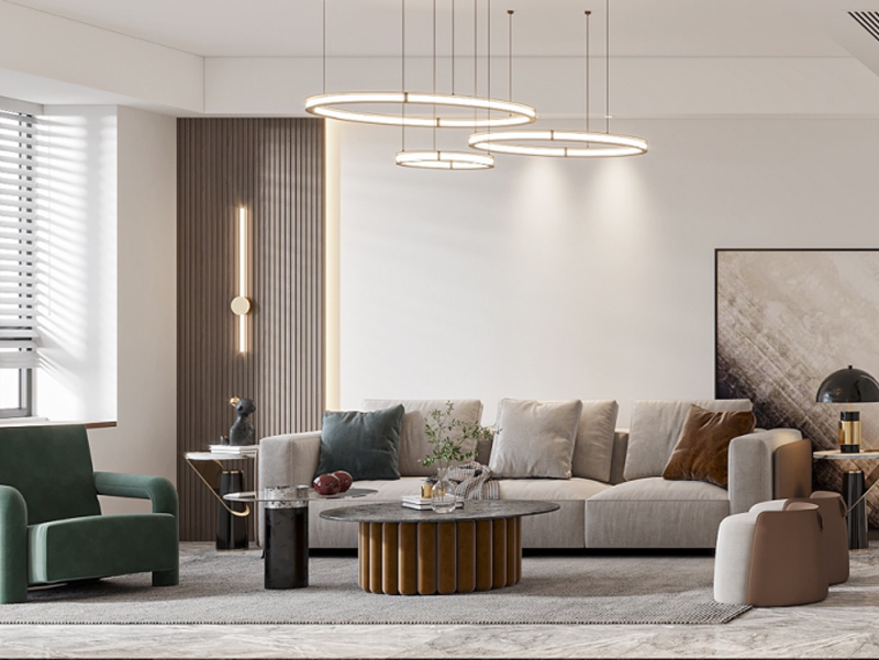 以米白、深灰的低饱和色调定克制基调,浅棕与木饰面注入温暖质感,皮质、石材的点缀强化精致度。冷暖材质碰撞出层次,却无冗余装饰,让空间在简约形制里,既显整洁秩序,又藏生活温度,避免寡淡感。