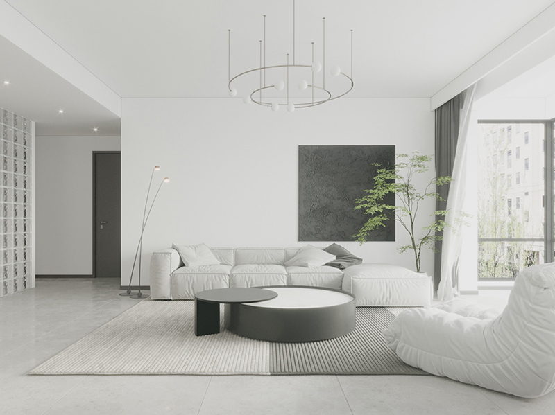 本案以现代简约风格为内核,黑白灰与米棕为中性主调,借利落线条、金属与石材等质感材质构建层次。诠释“干练与舒适共生”的居家美学,为居者打造兼具格调与烟火气的现代生活场域。