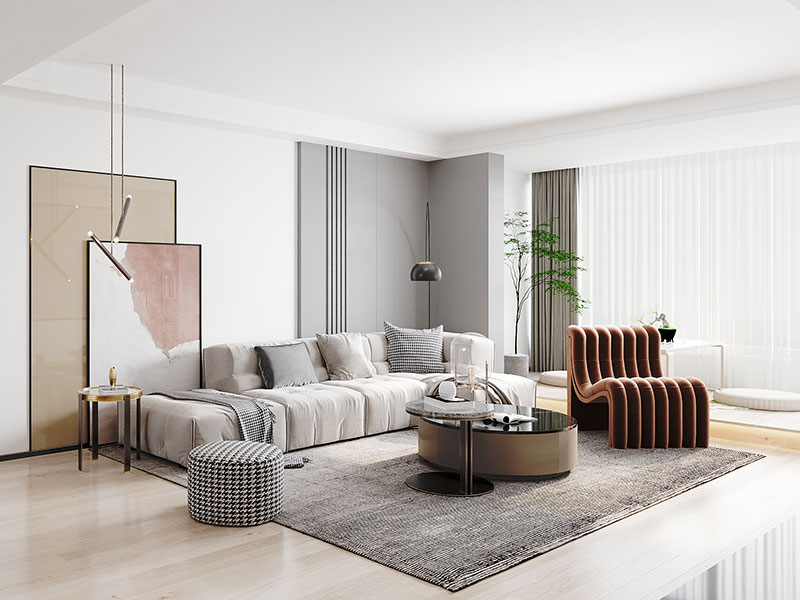 参照居住者的审美和生活习惯,运用色彩和材质等,呈现极简风居室环境,实用舒适、简雅时尚。
