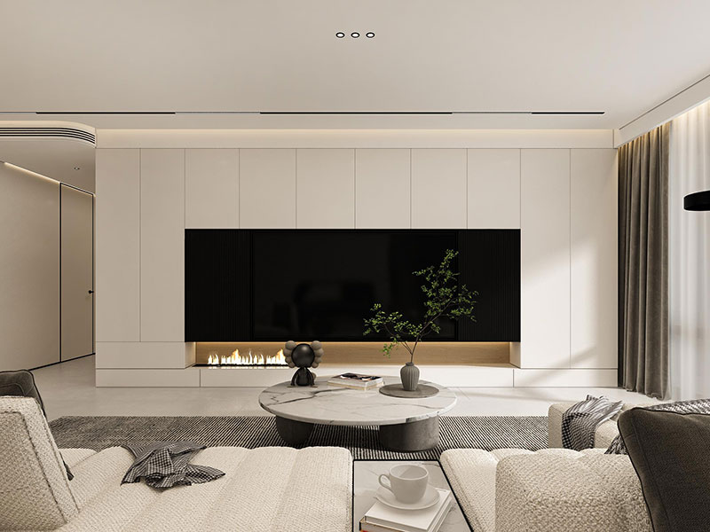 收纳柜:可以巧用墙体设计到顶收纳柜或者悬空式收纳柜等,大大增加客厅空间的储物能力。