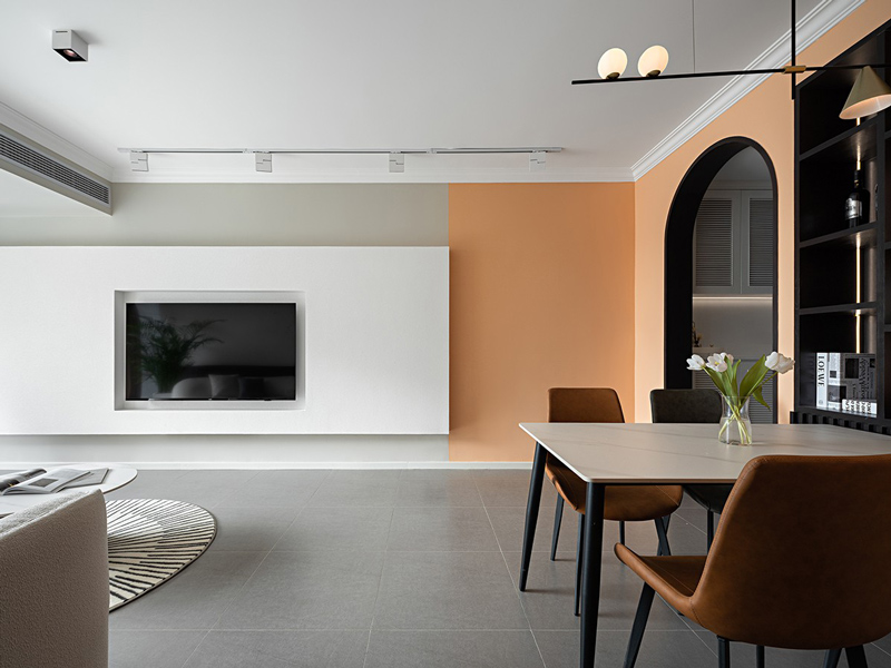 融入活力的橙色作为空间的吸睛色,虽然比例不多,但却有效的提升了整体活力,让空间不再单调。