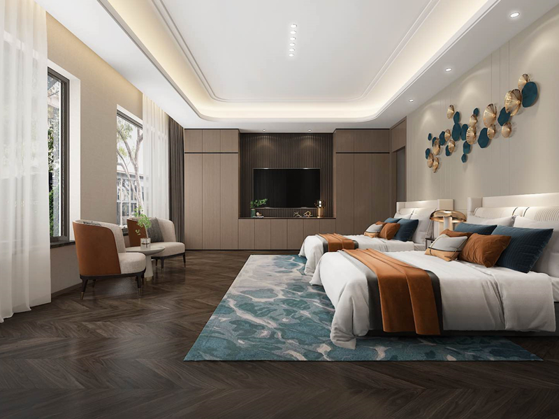 深色地板会让房间变得阴暗,选出颜色好看的窗帘会帮助房间因为深色地板带来的暗度,让房间装修变得更好看,选择亮丽一点的颜色窗帘来搭配深色地板会更好,橘黄色窗帘盒黄色窗帘会让房间变得五彩缤纷,色彩浓厚,不会有深色带来的压抑。