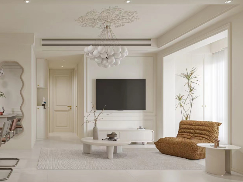 本案例风格定位于简约奶油风,以米白色作为空间基调,法式元素+奶油软装,呈现精致温柔的居所氛围。