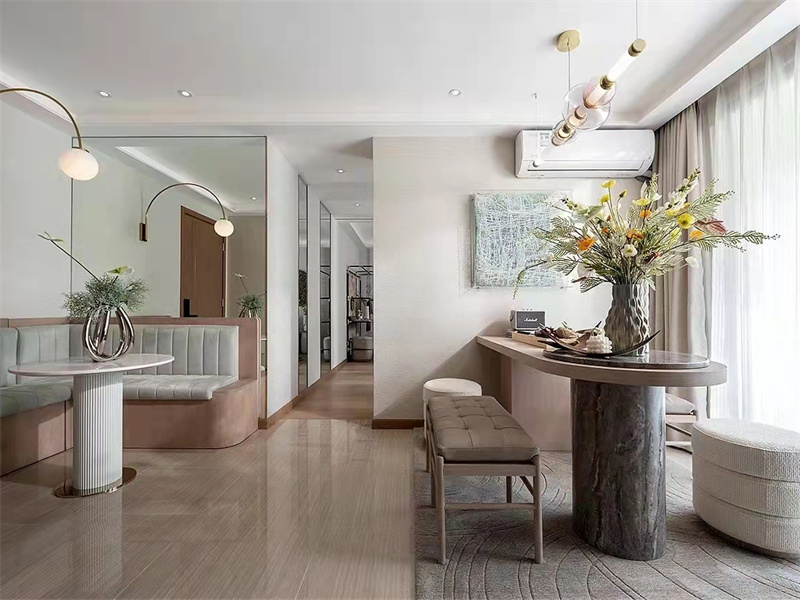 本案以现代简约风格为内核,从餐厅的实用饮食场、客厅的松弛社交域,到卧室的慵懒休憩区,均在简约中融入精致细节,既满足多元生活需求,又以冷静色彩与柔和质感,诠释出“干练与温度共生”的现代简约居家美学。